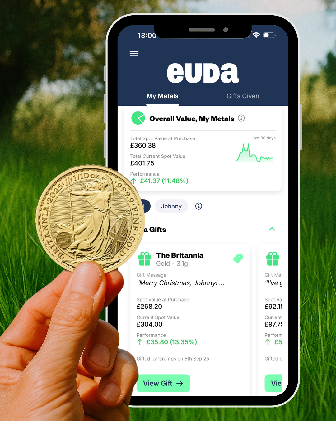 Simple. Inside every gift box is a QR code. When they scan it, they’re taken to a personal page with your message and a live chart showing the asset's value. They can re-scan it anytime. For the full experience, they can add the gift to the free Euda Wallet app to track its performance and access our learning hub on the go.  You too can download the Euda Wallet app to create a single log of your gifts and track their value!